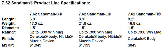 Lawrenceville, Ga. (November 2014) – Dead Air Armament®, producers of game-changing, 100% USA-made suppressors, launches the 7.62 Sandman® product line, which includes the Sandman-S®, Sandman-L® and Sandman Ti® models. What sets Dead Air suppressors apart from the competition is attention to detail in engineering and materials. Sandman® baffles are constructed from 100% Stellite®, more costly than traditional stainless steel, but offering better performance under extreme conditions and usage than Inconel®. Tubes are made from high performance precipitation hardened stainless steel, making the Sandman® series lightweight with no sacrifice on strength.